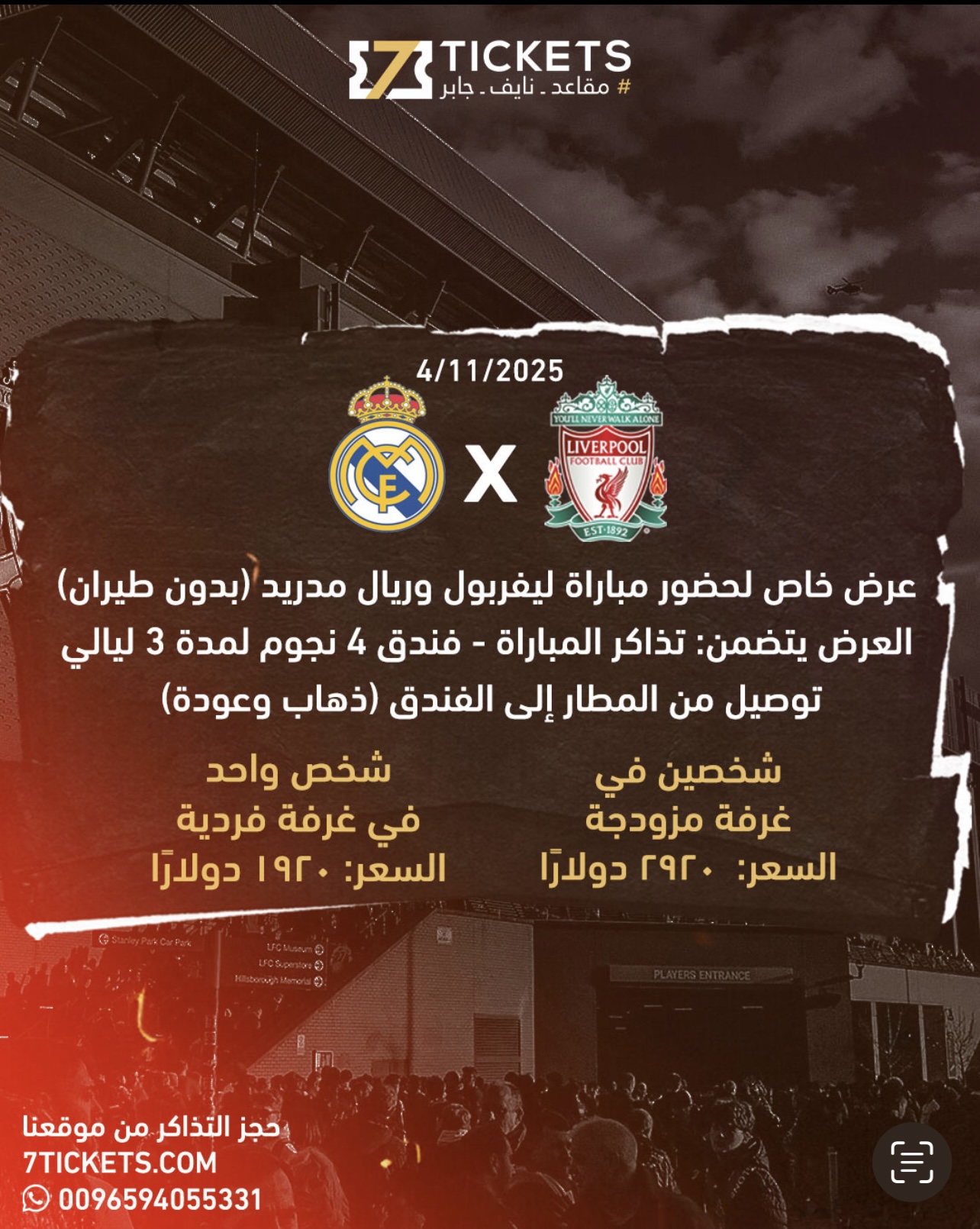 باكج لحضور مبارة مانشستر سيتي ضد ليفربول